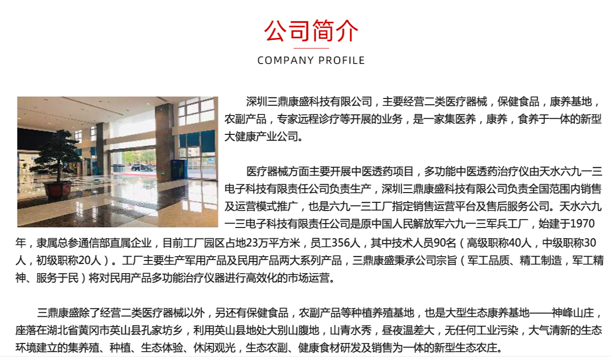 【三鼎康盛】多功能治療儀、康養(yǎng)中心整店輸出、保健食品、全國招商:13510034458陳經(jīng)理