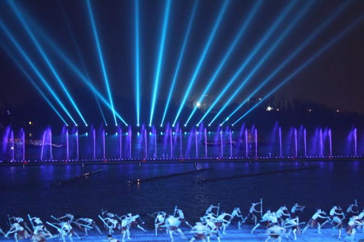 實(shí)景演出、城市光影秀都是舞臺(tái)燈光逐步放大的過(guò)程,但有一定差別,差別首先在于燈光演繹的范圍,實(shí)景環(huán)境中燈光演繹的范圍和規(guī)模大大拓展,光影秀的燈光設(shè)計(jì)師需要在實(shí)景基礎(chǔ)照明之上做加法,很多舞臺(tái)上的運(yùn)用手段需要做調(diào)整。同時(shí),景觀照明是一種特殊的照明形式,它對(duì)自然、人文特色要求更高,對(duì)燈具選用嚴(yán)苛,對(duì)照明工程實(shí)施標(biāo)準(zhǔn)制定精細(xì)。照明規(guī)劃要根據(jù)景區(qū)特色突出重點(diǎn)、造型美觀,還要考慮節(jié)能環(huán)保、經(jīng)濟(jì)安全等因素,避免光污染。另外,景觀照明的功能要明確,不同色彩和照射方式的燈光表達(dá)出的情感有冷暖、輕重之分,可以營(yíng)造不同氛圍的空間。