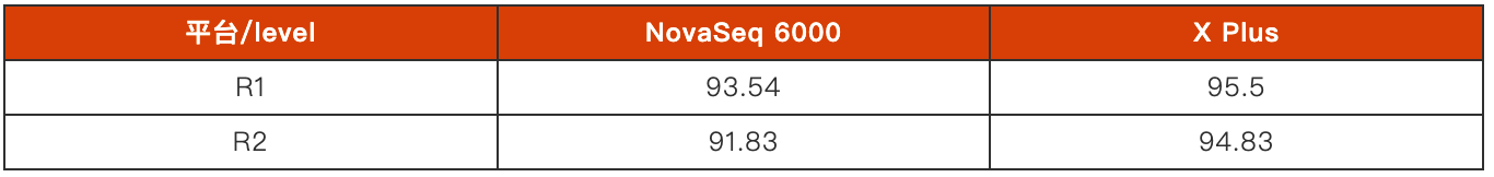 此外,受益于X Plus技術(shù)的提升,下機數(shù)據(jù)的Q30也得到了一定程度的提升。對于堿基平衡文庫,X Plus在Q30上的表現(xiàn)也會更好。相較于NovaSeq 6000,X Plus在R1端和R2端的Q30更為接近,隨著測序階段的前進(jìn),Q30變化極小。