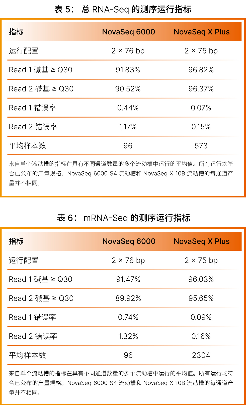 NovaSeq? X Plus由XLEAP-SBS化學(xué)技術(shù)提供支持,該技術(shù)在核苷酸的穩(wěn)定性、測序的高保真度等方面取得新突破,使得測序循環(huán)時間縮短2倍,準(zhǔn)確性提升3倍,同時大大降低重復(fù)核苷酸引起的錯誤和漏檢。NovaSeq? X Plus在五大核心應(yīng)用方面的提供的數(shù)據(jù)質(zhì)量達(dá)到或超過了NovaSeq? 6000基因測序儀,這些核心應(yīng)用包括全基因組測序、全外顯子組測序、全轉(zhuǎn)錄組測序、甲基化 測序和單細(xì)胞多組學(xué)測序。